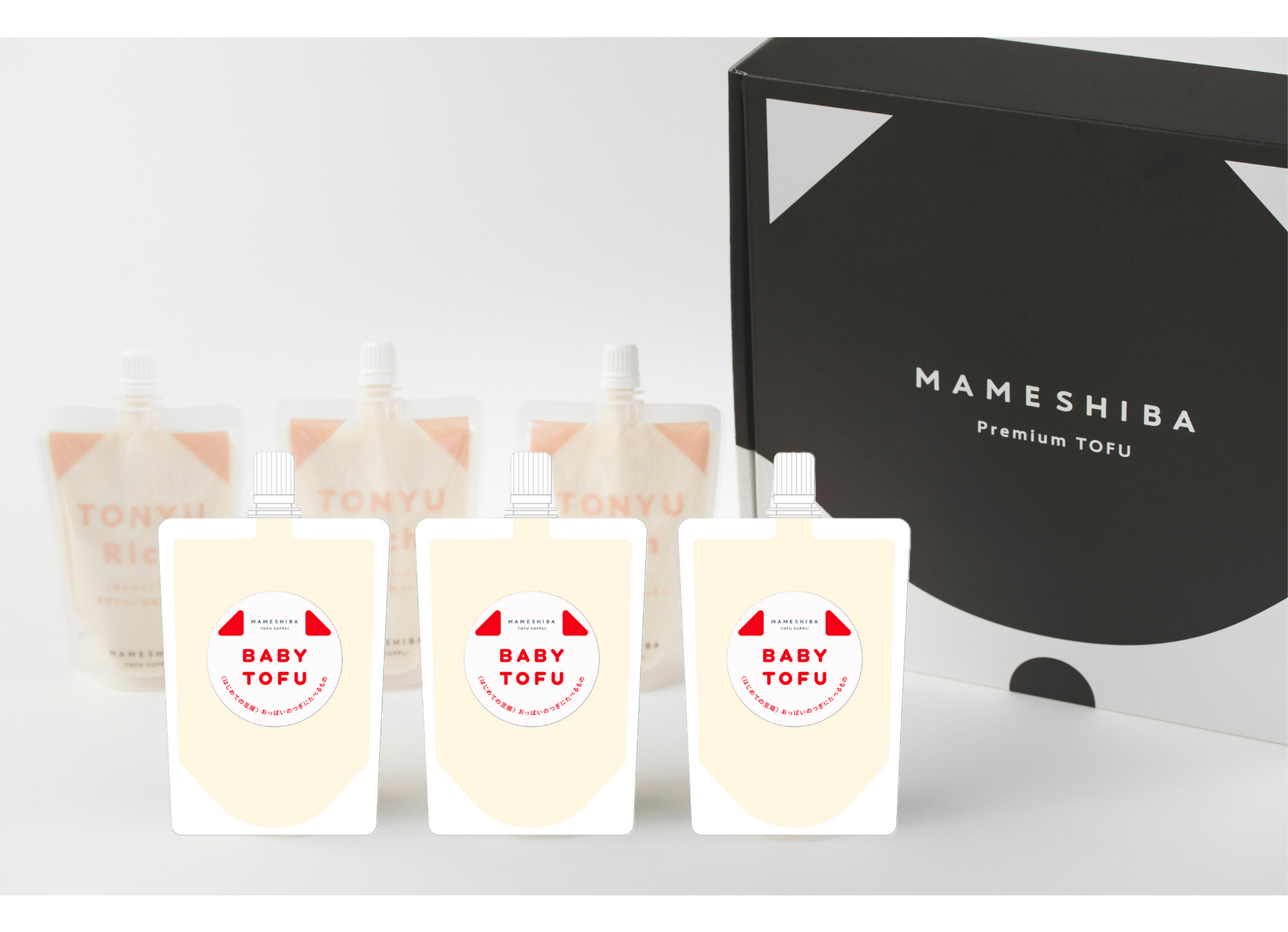 おっぱいの次に食べるもの『BABYTOFU』生まれたばかりの身体には保存料、安定剤、乳化にがりを使用せず、国産ブランド大豆ミヤギシロメ100%に名水百選つづら淵の湧水、天然にがり作っただけで安心のおいしさを。野菜ペーストを混ぜ込みやすい濃度のバランスに仕上げた離乳食豆腐。使いやすいパウチに優しい甘さで小さなお子様にもおススメです。赤ちゃんをお迎えしたご家族に身体を気遣う優しいギフトです。
