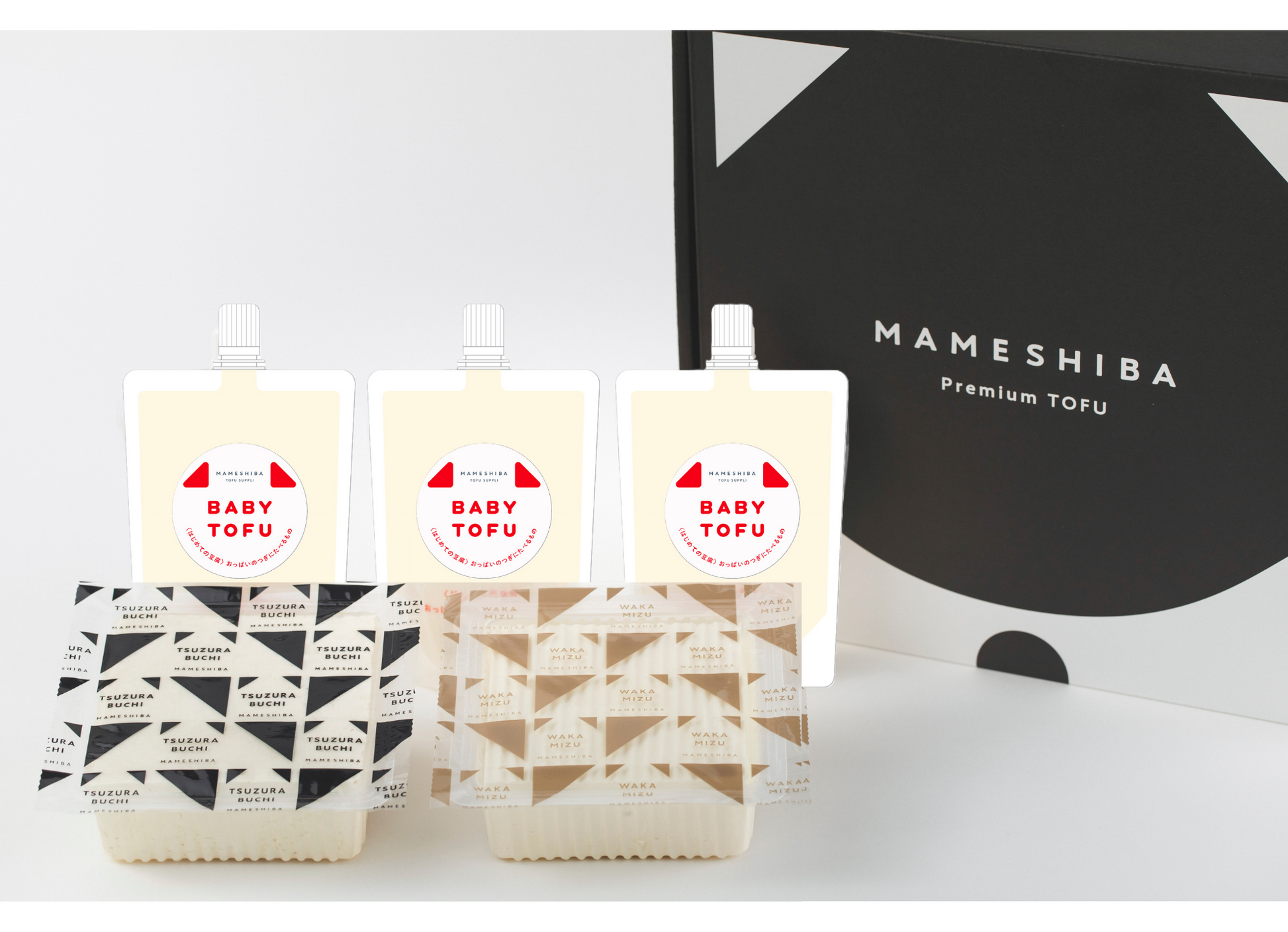 おっぱいの次に食べるもの『BABYTOFU』生まれたばかりの身体には保存料、安定剤、乳化にがりを使用せず、国産ブランド大豆ミヤギシロメ100%に名水百選つづら淵の湧水、天然にがり作っただけで安心のおいしさを。野菜ペーストを混ぜ込みやすい濃度のバランスに仕上げた離乳食豆腐。使いやすいパウチに優しい甘さで小さなお子様にもおススメです。赤ちゃんをお迎えしたご家族に身体を気遣う優しいギフトです。